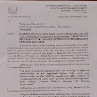 تمام کنٹیجنٹ ملازمین جو جولائی 2016 سے پہلے گلگت-بلتستان کے مختلف محکموں میں کام کر رہے ہیں اور بائیو میٹرک تصدیق شدہ ہیں ان کو وفاقی وزارت خزانہ کی منظوری کے بعد جی بی کے محکمہ خزانہ کے ذریعے مستقل پوسٹ پر ریگولرائز کیا جائے گا۔۔۔